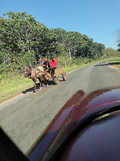 Längst ausgesöhnt mit der Situation machen wir uns fröhlich auf die Weiterreise nach Cienfuegos, Harald und ich dürfen vorne sitzen, Sicherheitsgurte sind uns in Kuba übrigens noch nie untergekommen. Unser Fahrer ist sehr nett und gesprächig, das Auto gehörte erst seinem Großvater dann seinem Vater und jetzt ihm, er selbst ist ausgebildeter Mechaniker und pflegt den Wagen selbst, der hat schon lange einen Merzedesmotor mit Automatik eingebaut. Wir fahren vorbei an Bananenplantagen, Reisfeldern und einer Kaserne, da erfahre ich, dass in Kuba jeder junge Mann zum Militär muss, Studenten nur ein Jahr, alle anderen zwei. Schulbildung ist für Kubaner sehr wichtig, sie haben, dank Fidel Castro nur 0,3% Analphabeten.